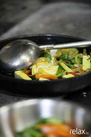 Индийская кухня славится невероятным количеством вегетарианских блюд. В Индии уверены, что природа даёт человеку всё необходимое для пропитания. И поэтому, нет сильной необходимости употреблять в пищу мясо. Основу кухни составляют фрукты, овощи, зерновые, рис. Хотя этому обстоятельству способствовал также тёплый климат страны. Блюда на основе овощей довольно лёгкие, но сытные. Например, Кадай Панир, основным ингредиентом которого является домашний сыр — панир. Участники дегустации своими глазами увидели, как шеф-повар ресторана Taj Мохан Сингх «наколдовал» традиционное индийское блюдо. Его можно приготовить и дома. Главное запастись специями.