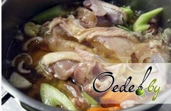 1. Разделываем курицу, отделяем мясо от костей и разрезаем на порционные куски.