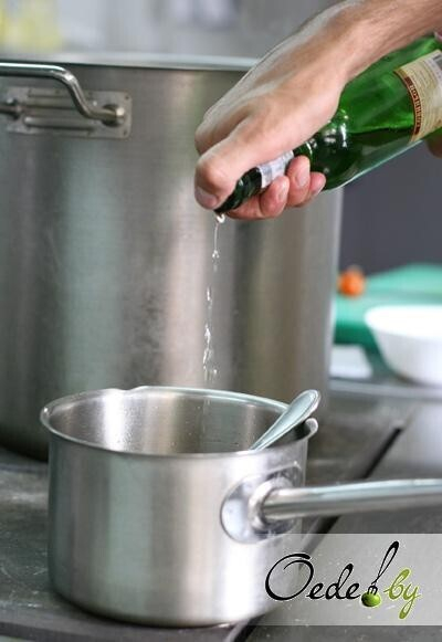 4. Тушим овощи на медленном огне. К небольшому количеству масла добавляем белое вино и веточку розмарина. Важно не перетушить овощи, чтобы они оставались мягкими.
