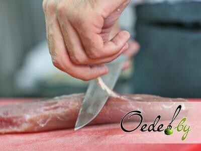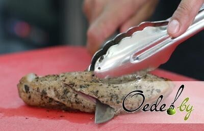 1. Зачищаем мясо и маринуем его в течение 15 минут смеси из морской соли, сушеного шалфея, перца и растительного масла. Пропорции специй определяются индивидуально, в соответствии с личными вкусовыми предпочтениями.