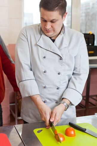 Михаил Григорчик — шеф-повар кафе «Собрание», председатель Белорусской гильдии шеф-поваров chefs.by. Михаил совместно с Ташей Лопатенко, выступили в уникальном для Беларуси жанре «поварского спектакля»: на суд зрителей были представлены массаж курицы и художественная чистка чеснока.