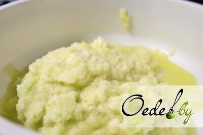 1. Очищаем картофель и натираем его на мелкую терку. Чтобы картофель не чернел, а драники имели золотистый цвет вместе с картошкой натираем лук, сок которого не позволит ей почернеть.