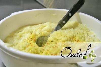 2. Если в картофеле много сока, отжимаем его и оставляем лишь мякоть. Ориентируясь по консистенции, добавляем немного муки и сметаны.В конечном итоге масса для драников должна по густоте сметану. По вкусу добавляем специи.