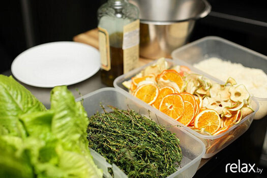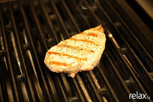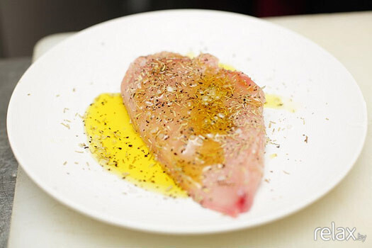1. Посыпаем куриную грудку сухим и свежим розмарином, черным дробленым перцем и морской солью, сбрызгиваем оливковым маслом первого холодного отжима.