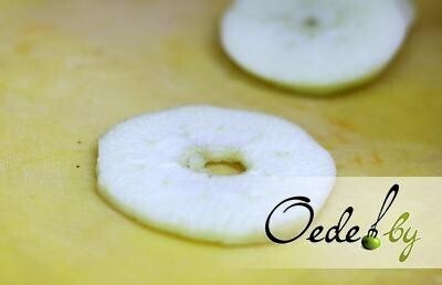 3. Окунаем каждое яблочное кольцо в кляр.