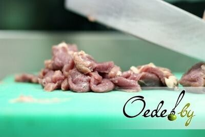 3. Говядину также режем тонкими кусочками.