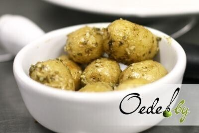 8. Пока говядина тушится, занимаемся приготовлением гарнира. Для этого несколько небольших картофелин отвариваем в мундире, а затем целиком обжариваем во фритюре.