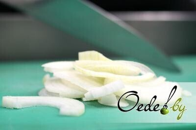 1. Очищаем луковицу, затем нарезаем ее тонкими полукольцами.