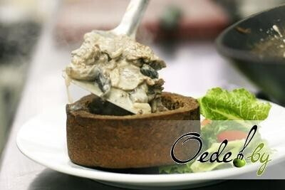 10. Готовый горшочек наполняем говядиной по-строгановски.