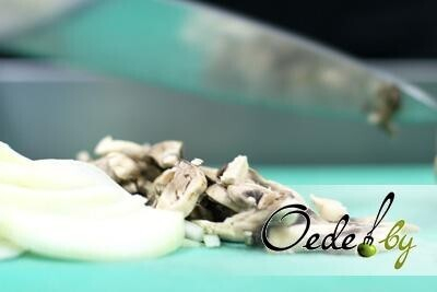 2. Мелко режем шампиньоны.