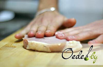 1. Нарезаем мясо и отбиваем его, придавая куску округлую форму. Изначально нежное и мягкое мясо можно не отбивать.