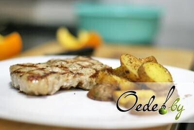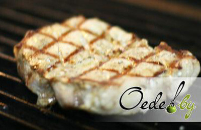 4. Смазываем мясо оливковым маслом и жарим его на решетке или сковороде до полной готовности в течение 8-10 минут. Определяем степень готовности мяса, делая прокол. Если появилась кровь, значит мясо еще не готово. Если же появился белый прозрачный сок, то блюдо можно снимать с огня.