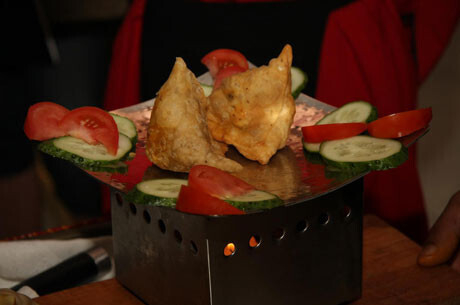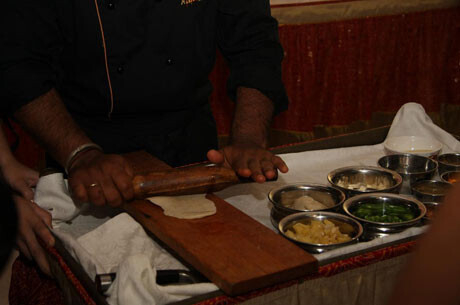 Самым большим подарком Дня индийской кухни и кульминацией вечера стал мастер-класс от шеф-повара ресторана Taj Равиндера Саксены, который приготовил традиционное индийское блюдо — самосу. Это своего рода вегетарианские пирожки, начиненные овощами или фруктами. Простое на первый взгляд блюдо на самом деле таит в себе множество тайн индийской традиции, складывавшейся веками. Секретами Равиндер поделился в процессе приготовления.