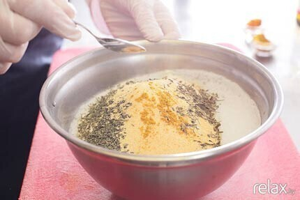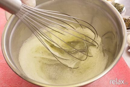 2. Взбиваем белки венчиком или миксером. Так мы создаем «цемент», который скрепит все специи.