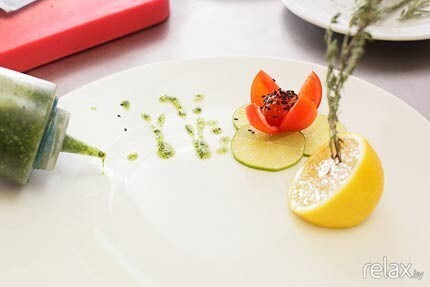 Пока сибас готовится, украшаем тарелку для блюда.