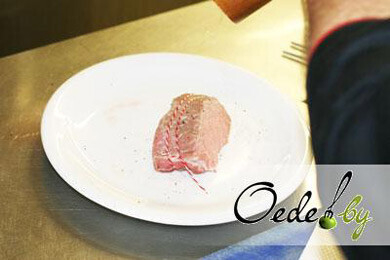 3. Солим и перчим получившийся свиной медальон. Оставляем мясо пропитываться специями и приступаем к подготовке овощей.