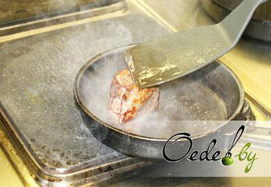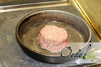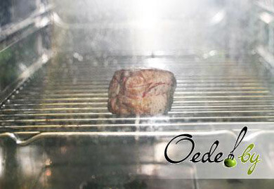 6. Поджаренный медальон помещаем в разогретую до двухсот градусов духовку и запекаем в течение 10 минут. В это время приступаем к приготовлению овощного гарнира.