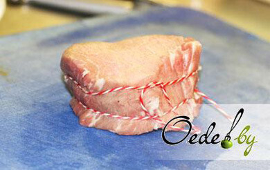 2. После для придания кусочку мяса аппетитной формы медальона перевязываем его веревкой так, как это показано Александром