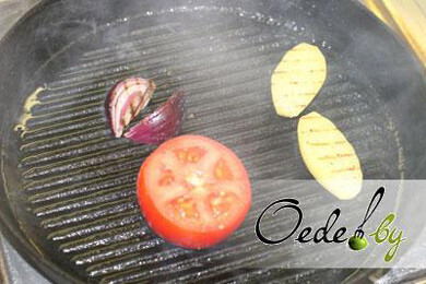 7. Подсоленные овощи поджариваем на сковороде-гриль до появления «румяных» полос.