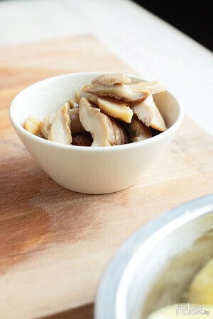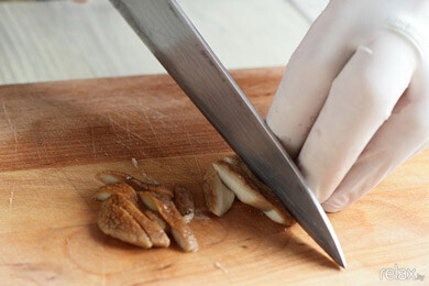 2. Небольшими брусочками нарезаем белые грибы для начинки.