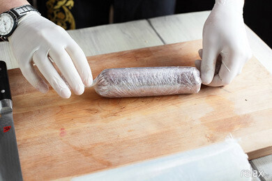 6. Теперь все это аккуратно закручиваем в рулет, следя за тем, чтобы структура оставалась однородной.