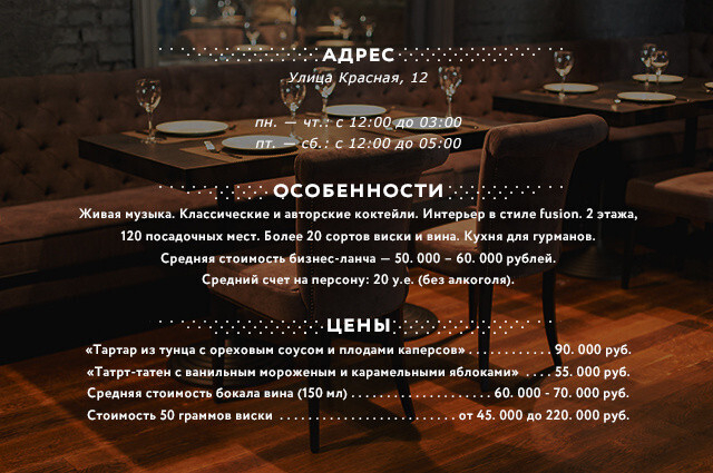 Отметим, что бокал вина в среднем обойдется в 60. 000 – 70. 000 рублей, а 50 граммов виски от 45. 000 до 220. 000 рублей.