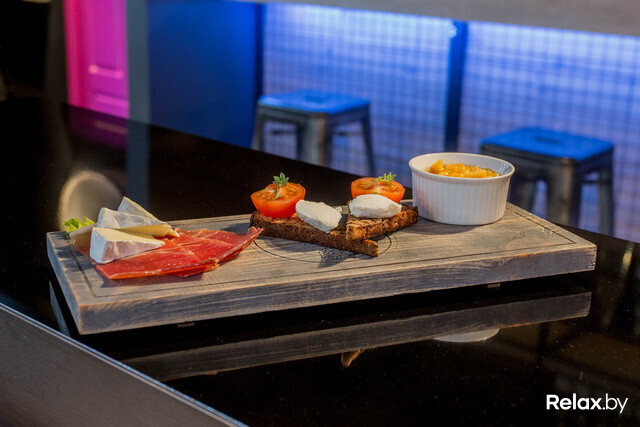«В меню есть основная часть и тапасы. Мы не работаем со сложной кулинарией, а стараемся сделать кухню простой и вкусной. Главная задача — обыграть вкус вина. В меню, например, есть кростини с рикоттой и инжиром, кесадилья с креветками и копченым сыром, самса с осьминогом, креветками и кальмаром и брускетта с индюшиными колбасками и овощами».