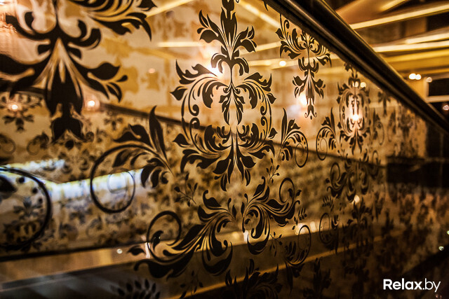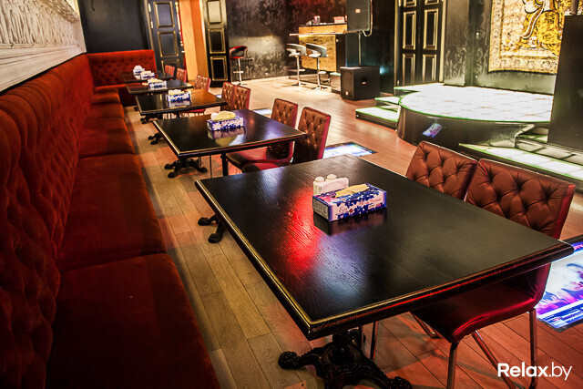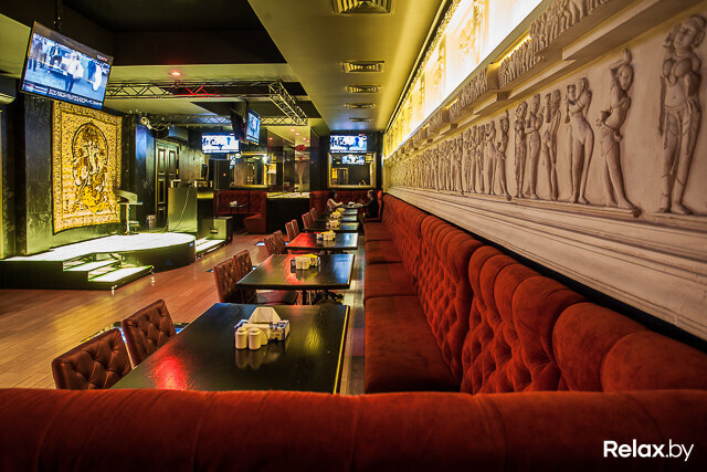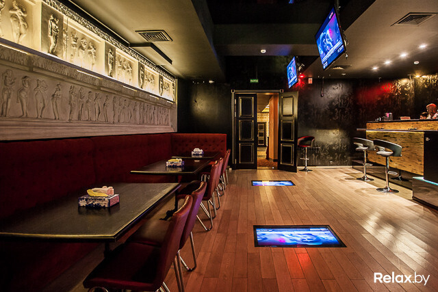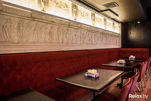 Атмосфера вышла кулуарной, интерьер отсылает к будуарному стилю. Черно-серые изображения на стенах оживают под блеском софитов и превращаются в роскошные картины с элементами эротики, украшая VIP-зону. Часть клуба украсили фресками, которые по стилистике перекликаются с творчеством народов Древней Месопотамии.