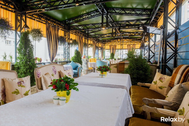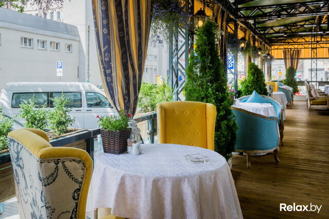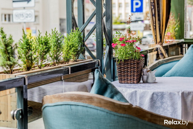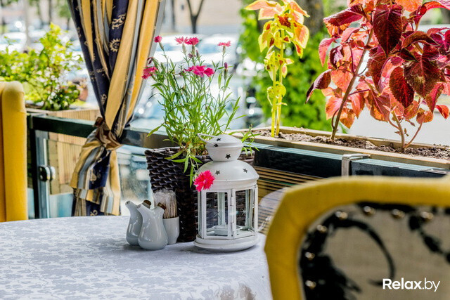Отдельно стоит сказать о летней террасе: на субъективный взгляд редакции, она здесь одна из лучших в городе, и не только благодаря эстетичности. В оформлении — европейский подход, много зелени, натуральных цветов. Главный плюс — в функциональности: терраса балконного типа хорошо проветривается, но при этом отлично защищена от дождя и солнца.