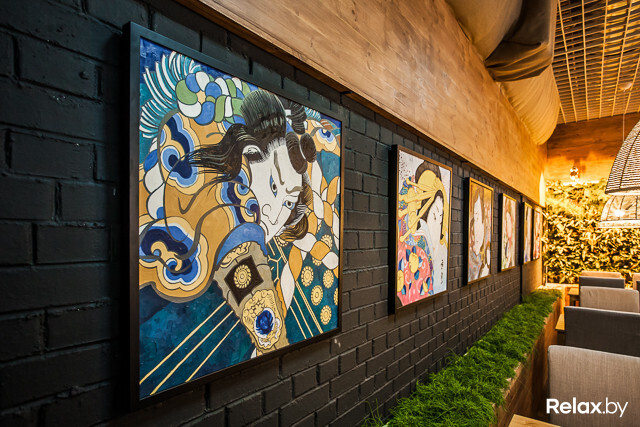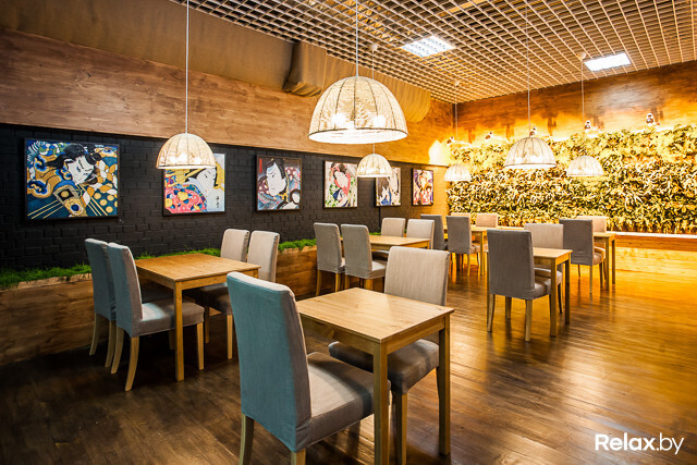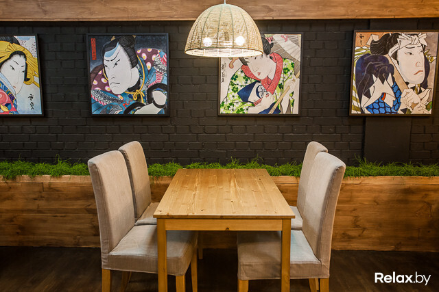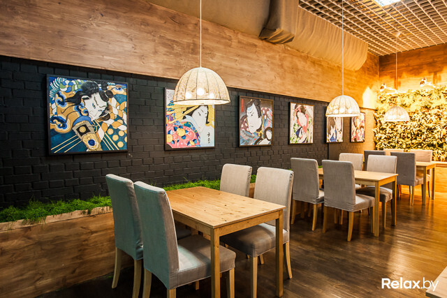 Знаменитый японский сад сюда привезли в виде целой стены, сплошь покрытой живыми растениями. Все остальное выполнено здесь только из натурального дерева. В ресторане мало посадочных мест (заведение рассчитано всего на 30 персон), но зато много пространства и воздуха. В дополнение — картины японской тематики и улыбчивые официантки в кимоно.