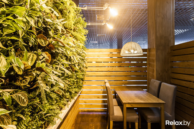 . Из особенного — высокая кухня с экзотической рыбой в роллах, возможность приходить со своим алкоголем и привлекательный декор с вертикальным озеленением.