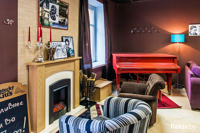 Эту миссию принял на себя эклектичный декор. Здесь все смешалось, как предписывает канонический роман из той эпохи. Тот, кто желает погрузиться в атмосферу XIX века, может присесть у камина и затянуть трубку, взять в руки детектив и вдохнуть аромат потрепанных страниц, послушать пластинки на патефоне, поболтать по старинному телефону либо сыграть на красном рояле. Любителям черно-белых клавиш: сюда правда можно прийти и поиграть.