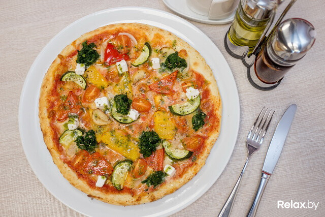 В разделе пицц найдете «Маргариту» (от 37 700 рублей), грибную (от 49 900), «Четыре сыра» (от 71 200), овощную (от 68 800), «Цезарь» (от 84 700), «Чикен барбекю» (от 90 100), «Адриатическую» (от 71 900), пиццу с тунцом (от 73 000) и многие другие — стоимость блюда зависит от размера основы.
