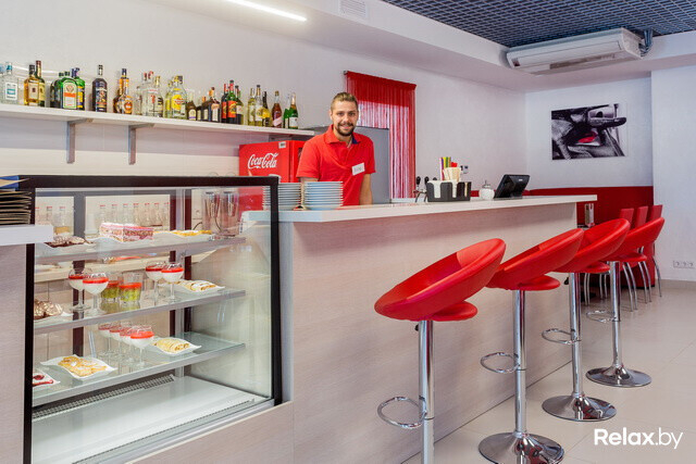 В меню кафе «Премьер» — завтраки, бизнес-ланчи, пиццы, бургеры, пельмени, пасты, супы, салаты и другие популярные блюда. Кроме того, в наличии детское меню, десерты, смузи, свежевыжатые соки, коктейли и алкогольные напитки. Как рассказал нам шеф-повар Михаил Кремень, в кафе используют только качественные продукты и не признают полуфабрикатов — все, начиная от томатов в собственном соку и заканчивая пельменями и десертами, повара готовят сами.