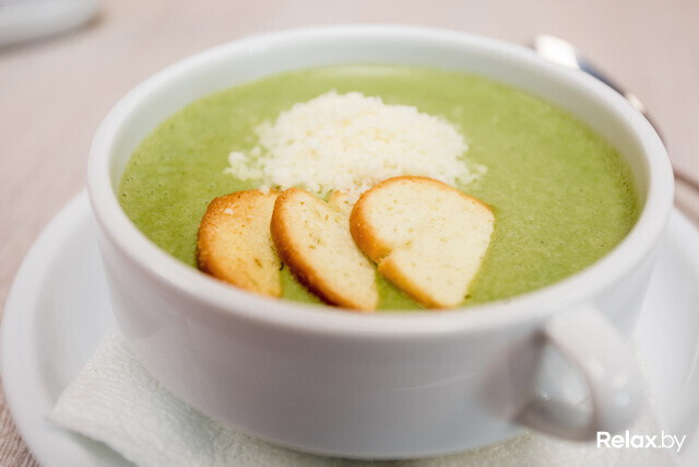 Любителям сэндвичей в заведении могут предложить бургеры с сыром (47 200), говядиной (74 200) или курицей (75 300). Если захотите подкрепиться основательнее, в меню найдете суп-крем со шпинатом (53 000) и солянку (46 800). В дополнение к первым блюдам предлагают французскую булочку (10 700), фокаччу с кунжутом (27 400) или сыром Дор блю (33 300).