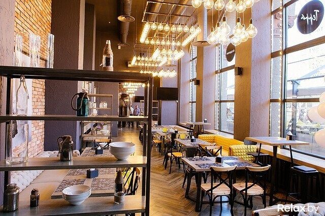 Корпоративное открытие новой, принципиально отличной от своих «сестер» пиццерии Terra Pizza прошло в формате фуршета — заведение показали белорусским бизнесменам, журналистам, но с ремаркой: интерьер кафе и сейчас рассекретили не до конца, замаскировав совершенно иной расстановкой.
