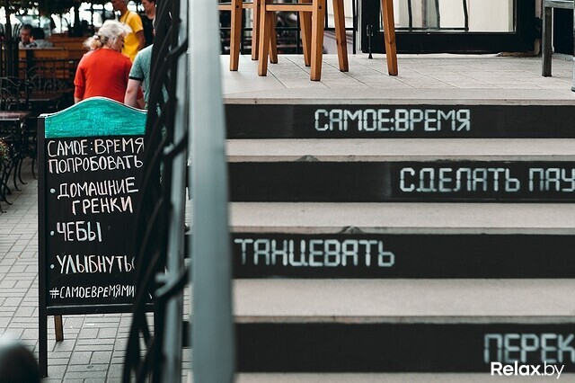С сентября появятся еще более интересные предложения: завтраки по часовым поясам. Каждый день с 9:00 до 17:00 здесь можно будет съесть то блюдо, которое как раз в это время (учтя пояса) подают на завтрак в другой стране. К примеру, в 11:00 утра попадете на английский. Всего их будет чуть меньше 10-ти.