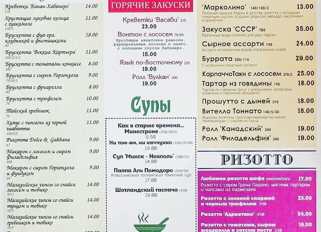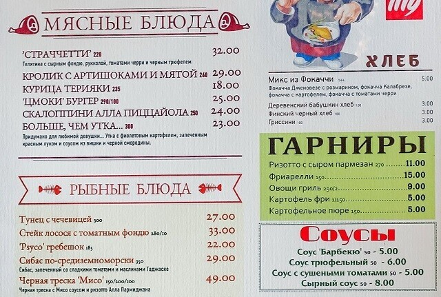 За счет различной атмосферы в каждом из залов заведение придется по душе самому разному гостю. Шеф-повар, щедрый на бонусы и комплименты, любит экспериментировать с собственной кухней, так что в ресторане есть авторские позиции, какими стоит полакомиться. Стоимость блюд и напитков близка к средней по столице.