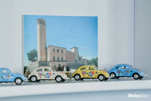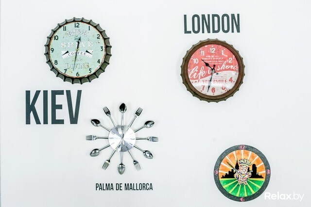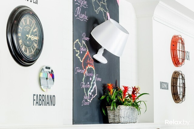 На втором этаже в уместный здесь поп-арт вмешиваются классические мотивы. Скатерти тут — белые, помещение украшает светлое старинное пианино, однако от «изюминок» не отказались: на стенах здесь — самые разные часы, показывающие время в тех городах, где удалось поработать Марко.