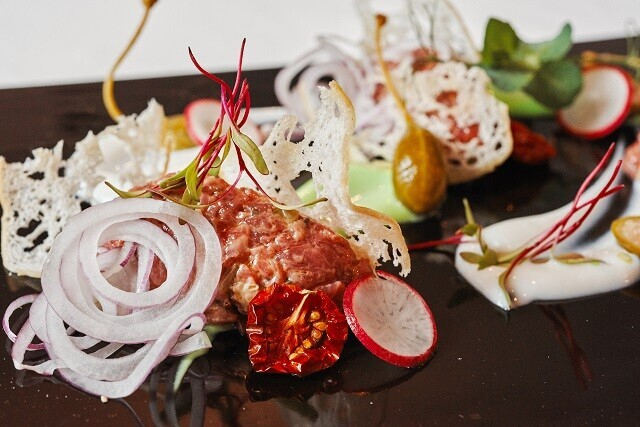 Местную кухню не удастся вписать в рамки существующих: итальянский шеф-повар то ловко играет с восточными мотивами, то вплетает европейские черты. Точно можно сказать лишь, что каждое блюдо — авторское: даже если вы видите знакомое название блюда, будьте уверены, что оно модифицировано мастером.