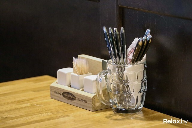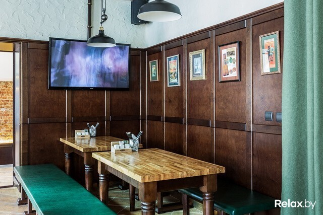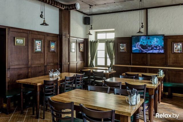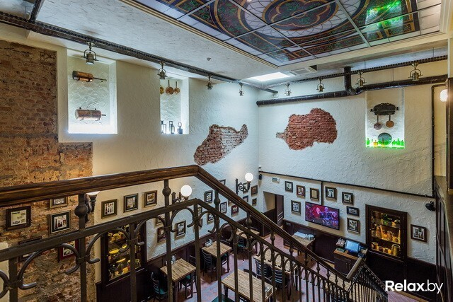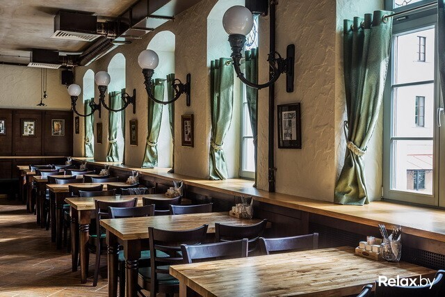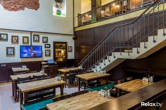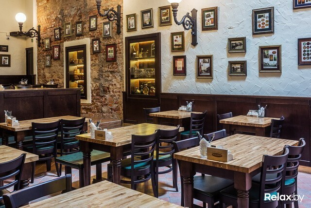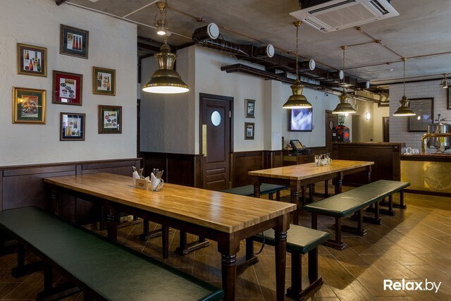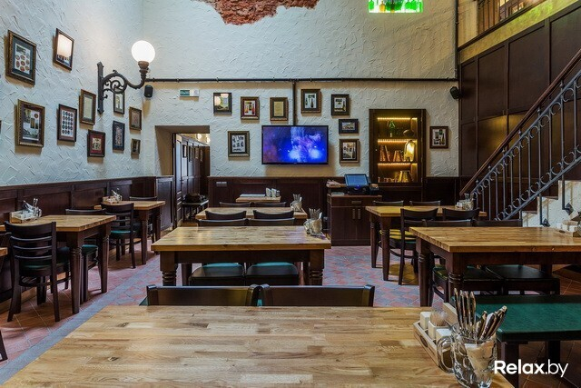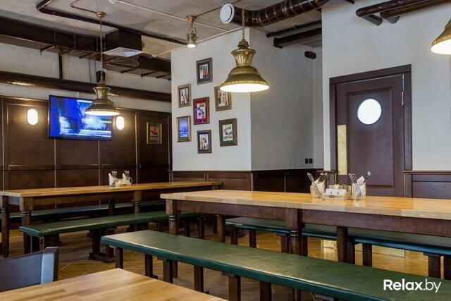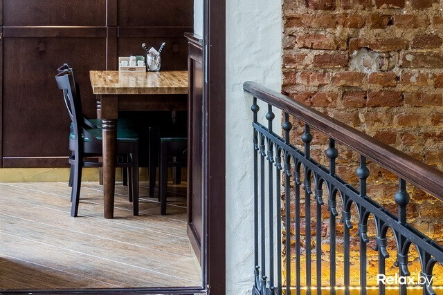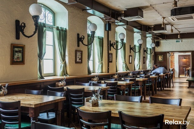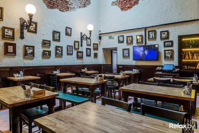 В заведении 4 зоны: два этажа, а также «балкон» и зал-музей. Разместиться в нем смогут 230 гостей. Для шумных посиделок — столы для 12-ти человек; для душевной беседы — места для двоих. Интерьер в новом ресторане такой же, как в других: массивные деревянные столы, внушительные стулья и скамьи, кованые элементы, стены, декорированные старинными снимками...