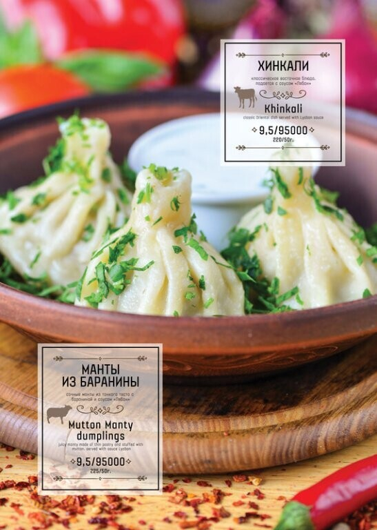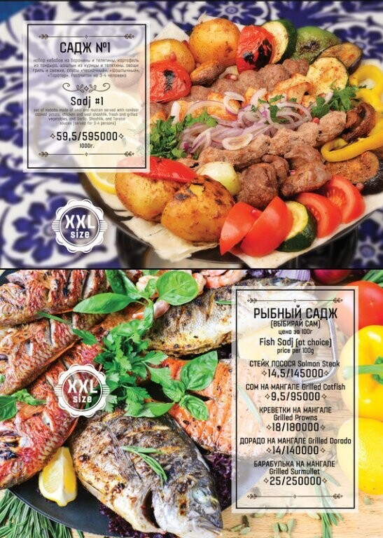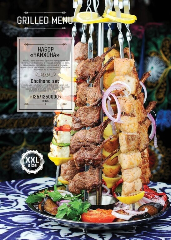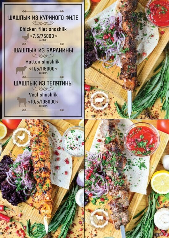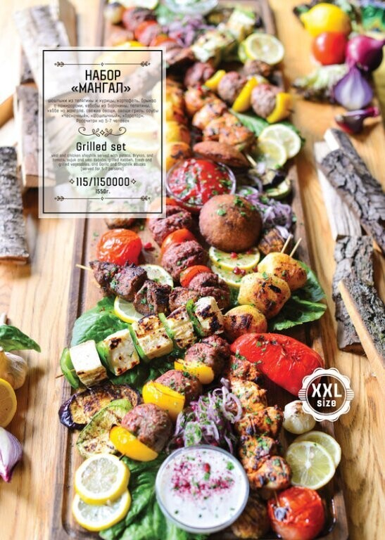 Помимо стандартных позиций в меню найдете также блюда, приготовленные на мангале.