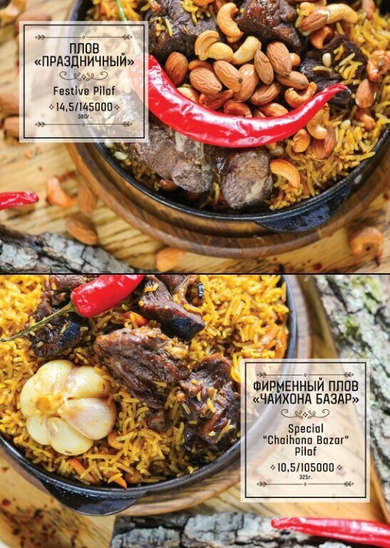 Кухня «Чайхона Базар» — это отдельный мир, где команда заведения собрала для гостей лучшие рецепты пяти стран Востока и умело адаптировала их под европейские вкусы. В меню найдете блюда Армении, Ливана, Узбекистана, Турции и Грузии.
