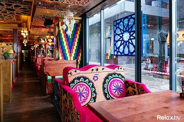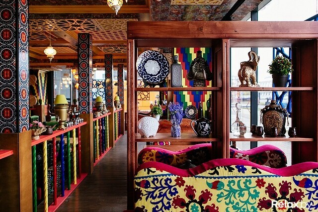 Как утверждают в управлении заведения, «Чайхона Базар» — это не просто место, где едят вкусный бараний плов, запивая зеленым чаем. Это территория настоящих впечатлений: интерьерных, гастрономических и эмоциональных. И попадая в ресторан, с этими словами сложно не согласиться. Первое, что бросается в глаза, — яркий восточный декор и невероятное буйство красок.