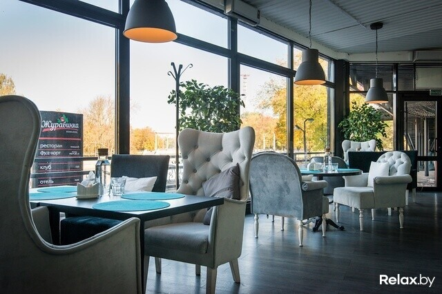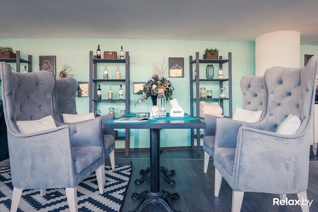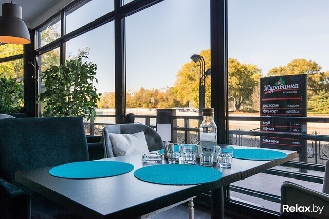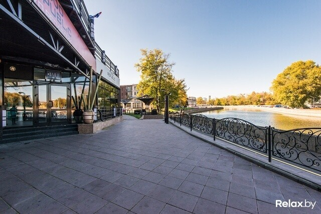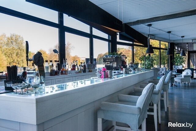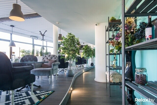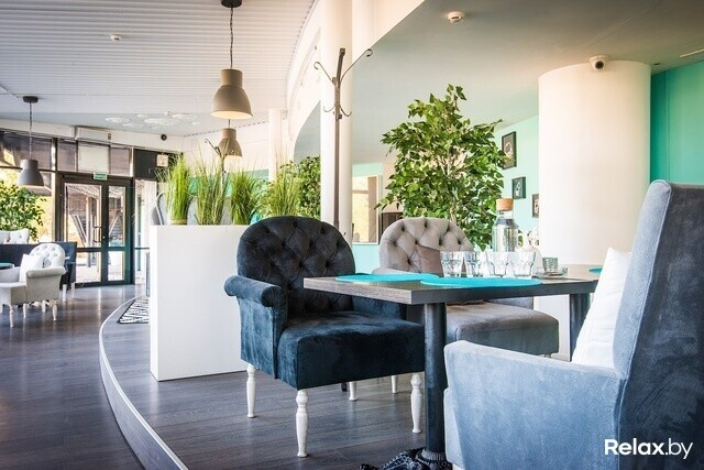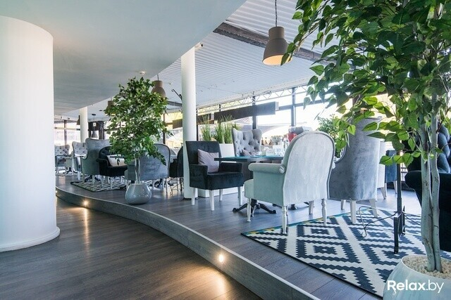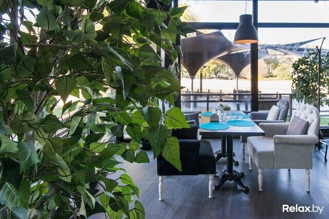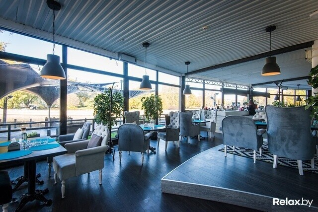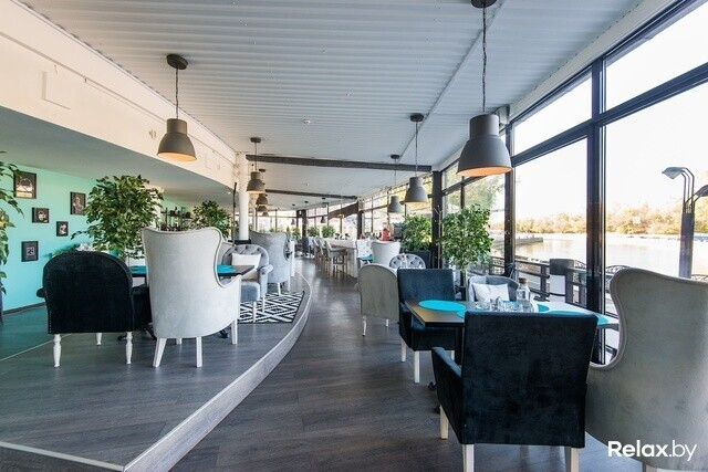 В уютное кафе сохранили главную особенность уже полюбившейся минчанам террасы: вид на набережную Свислочи (теперь — из внушительных панорамных окон). В основе стильного интерьера мягкие, комфортабельные и привлекательные велюровые кресла. Фоновая музыка призвана дополнять атмосферу расслабленного отдыха — lounge.