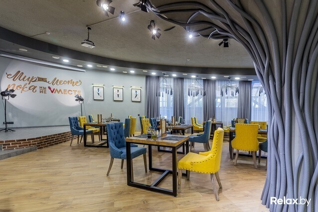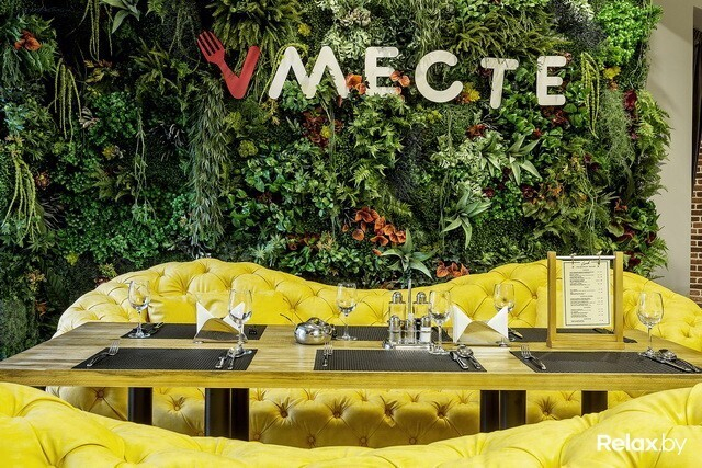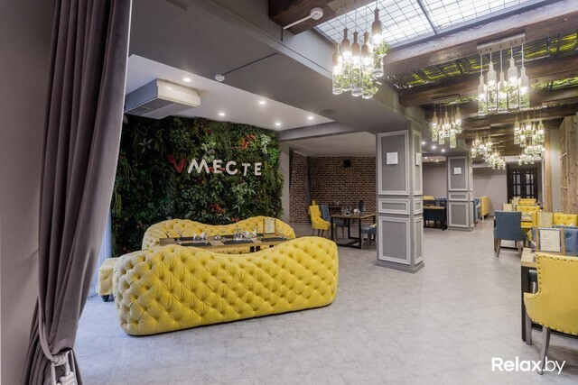 По словам владельцев, было не так просто разработать интерьер для этого заведения. Помещение непростое: в центре располагается несущая колонна, которую решено было декорировать в дерево. Сейчас в обеих зонах гастробара «Vместе» — ресторанной и барной — комфортно разместится 80 гостей. В ресторанной зоне можно будет посмотреть фильм или послушать живую музыку, а за большой контактной барной стойкой душевно пообщаться в спокойной обстановке с друзьями или гостеприимными барменами.