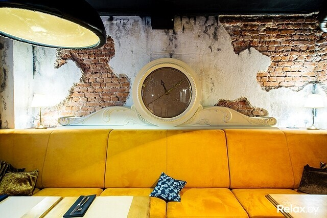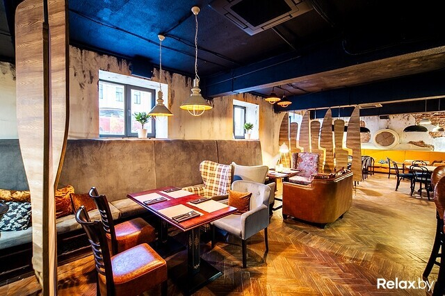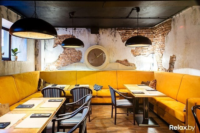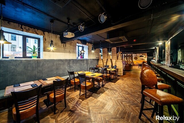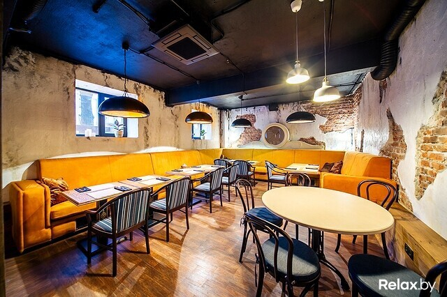 В лофтовом гастробаре с «состаренными» стенами, в каких не до конца закрыта кирпичная кладка, деревом, а также акцентами в виде яркого текстиля, больше 50 посадочных мест. В центре расположилась периметральная контактная барная стойка. Есть несколько зон: например, при входе — демократичная, для тех, кто зашел на чашку кофе, в центре — гостиная с мягкими диванами и креслами, вдалеке — «винная» с атмосферой поспокойнее. Есть места и для шумных компаний: в баре будут транслировать значимые спортивные события, так что эти вместительные столы временами станут заполняться болельщиками.