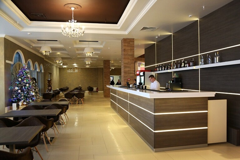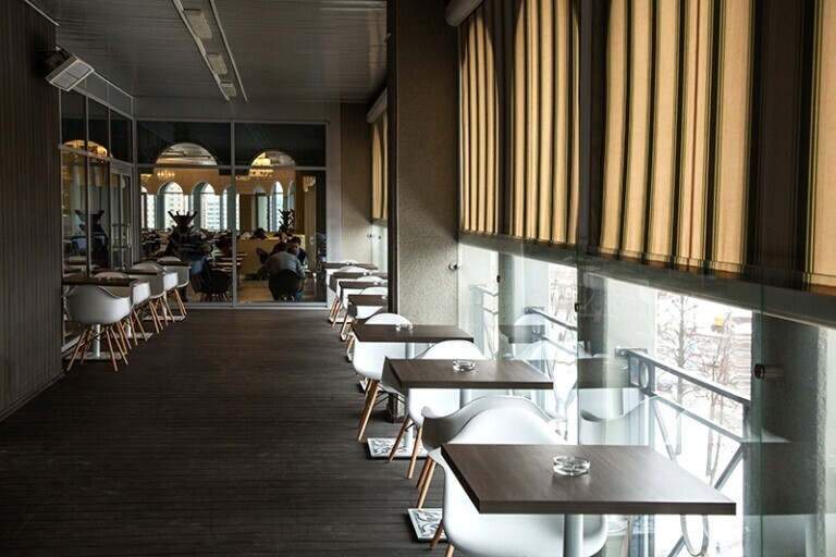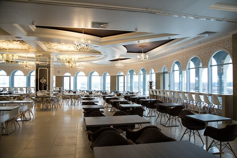 От других точек быстрого питания Belvedere отличается просторным светлым интерьером, большими панорамными окнами, через которые открывается красивый вид на город, и различные возможности размещения гостей: в зале на 270 посадочных мест найдете столики как для двоих, так и для больших компаний, а также длинные барные стойки, где можно присесть даже в одиночку. Кроме того, в ресторане предусмотрена отдельная открытая терраса со специальным местом для курения.
