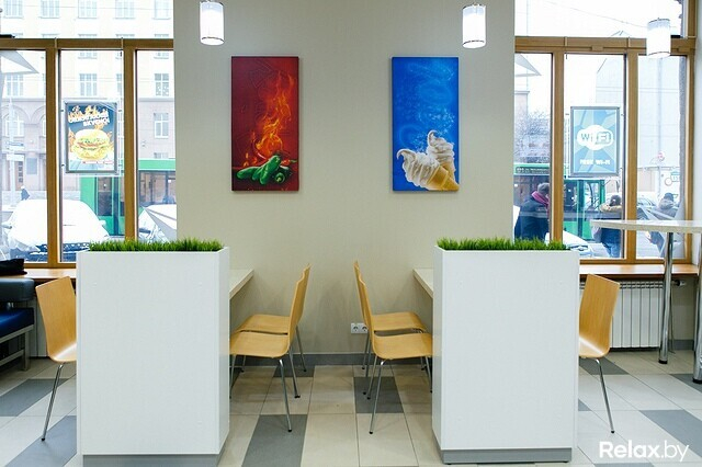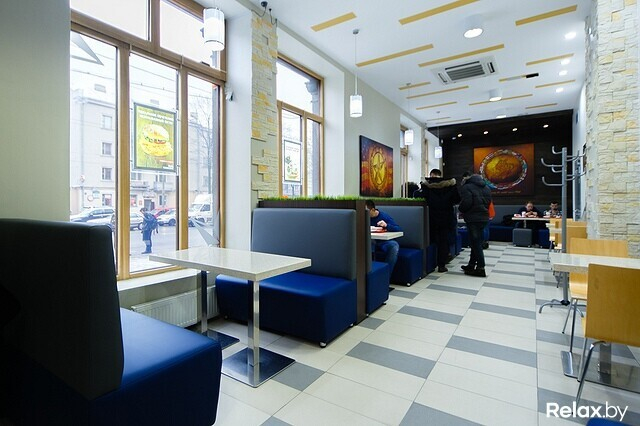 Главное отличие нового места от некоторых конкурентов и собственной первой точки — наличие системы безлимитных напитков. Стакан обойдется в 2 рубля, а газировка, которую вы сможете в него наливать, будет ограничена лишь вашими силами. Система выдачи тут такая же, как в ресторанах главного конкурента: в нескольких окошках удается сделать заказ и получить чек с номером, в отдельном — забрать поднос.