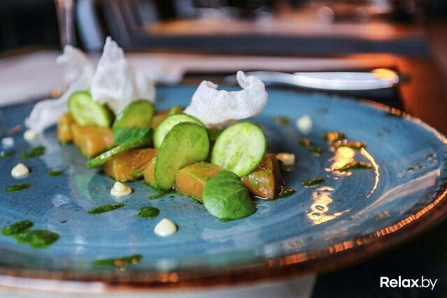 Первая — легкие закуски и салаты с азиатскими мотивами, например, кхмерская говядина лок-лак. Вторая часть — северные рецепты, такие как лосось домашнего копчения с баклажанами и пюре из пастернака. Третья часть — любимые блюда, которые все едят дома, но преподнесенные по-ресторанному, — эдакая причесанная и окультуренная домашняя белорусская кухня. Найдется, например, картофельная бабка, голубцы, та самая насквозь пропитанная ромовая баба, пирожное «Картошка». Многое готовят по старинным рецептам (аж конца XVIII столетия) в современной интерпретации. Третий пласт в меню создавали, чтобы показать, что белорусская кухня может быть презентабельной и интересной. Учитывали и то, что новое заведение расположилось в центре столицы, и сюда наверняка станут заглядывать туристы.